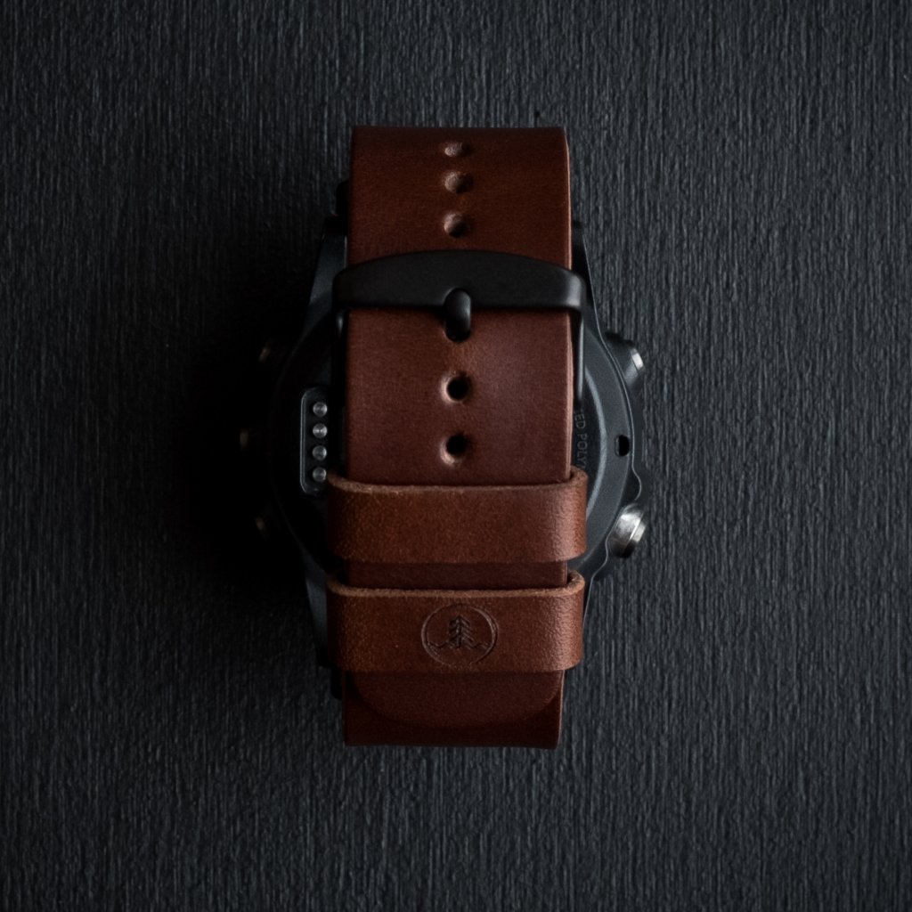 Kožené remienky Garmin so zapínaním QuickFit sú vyrobené z prvotriednej hovädzej kože a ručne prešité voskovanou nylonovou niťou, aby sa dosiahlo pevné a odolné šitie. To dodáva remienku autentický kožený pocit a robustný vzhľad.